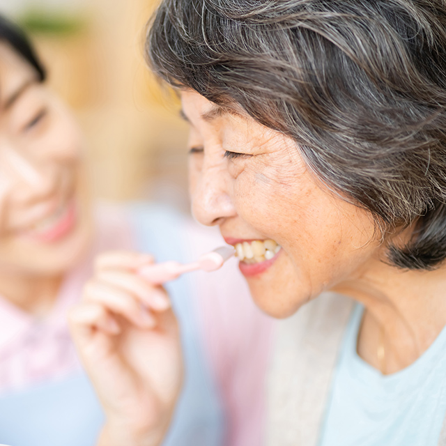 ご高齢者の方やお身体が不自由な方の場合、毎日の正しいブラッシングや医院でのケアなどができず、歯や口腔内に問題を抱えている方が多くいらっしゃいます。歯の病気から肺炎などの全身疾患につながる場合もありますので、きちんとした診療を受けられることをお勧めします。